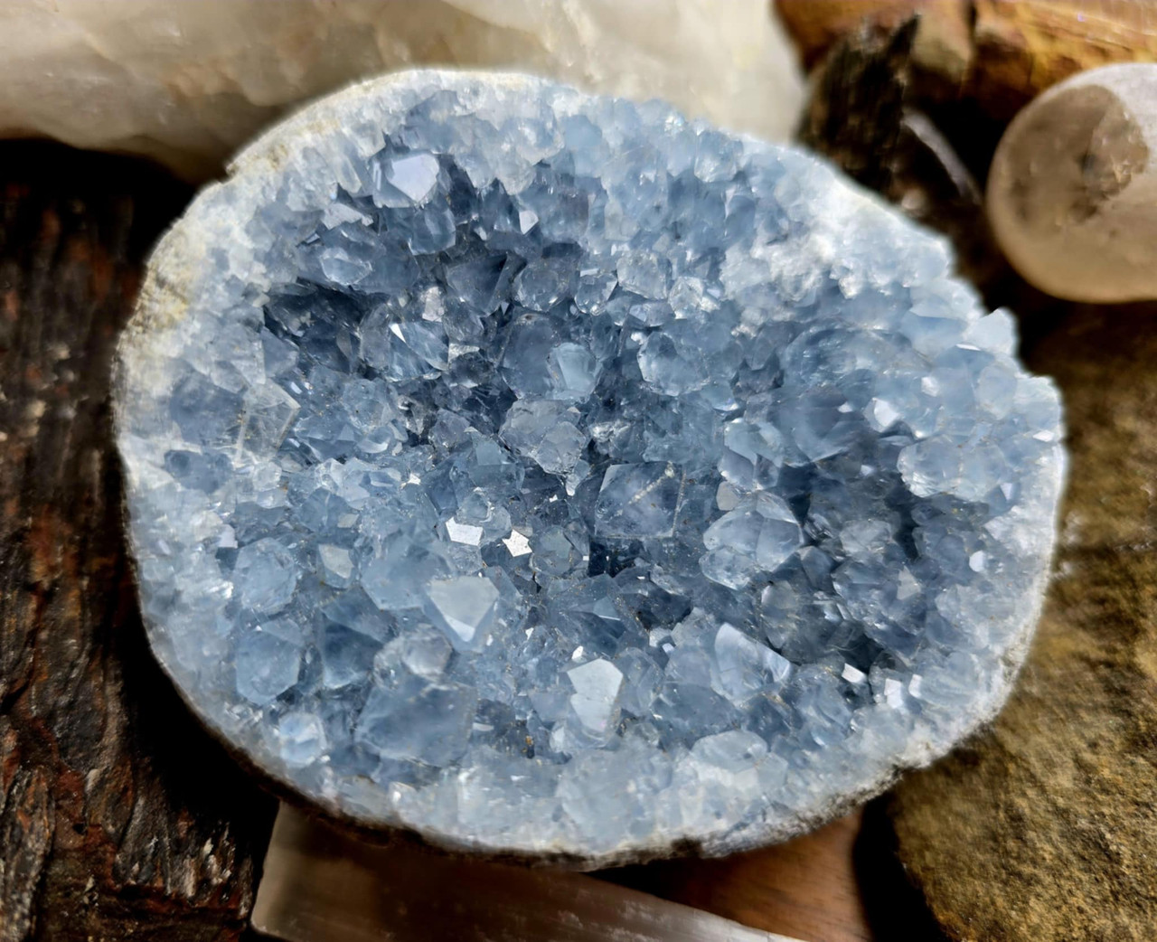 Celestite has a gentle, uplifting energy which can raise one's awareness into the higher realms. It is the most effective stone for accessing the angel realm. This stone enhances inner vision and intuition. Celestite is ideal for placement in the bedroom, healing room, or meditation space.
