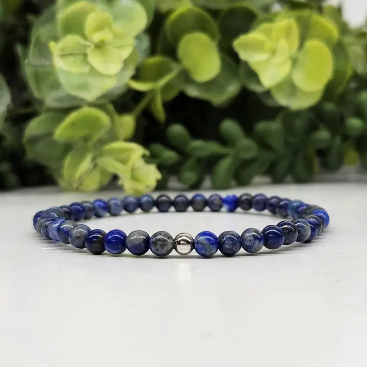 Beautiful Lapis Lazuli stretchable bracelet using 4mm gemstone beads with a silver color metal bead. *Double strung for durability. *7.5 inches in length. *All natural semi-precious gemstones. Each bracelet is beautifully unique.